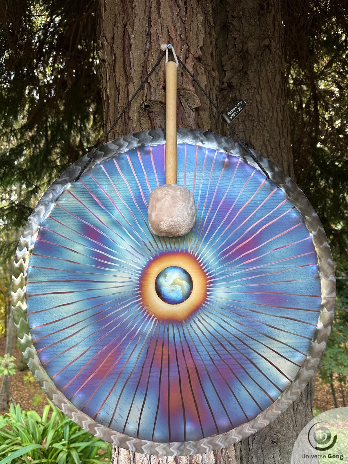 Details Gong : Vento - VT60-0022IncludesGong Reference VT60-0022Size Universe Gong 60 cms / 24.0 inNote / FrequencyG#2 - 101.5 HzWeight2.60 Kg / 5.73 lbOnly available as a bundle€ 449Shipping cost iFreeStrike MalletIncluded