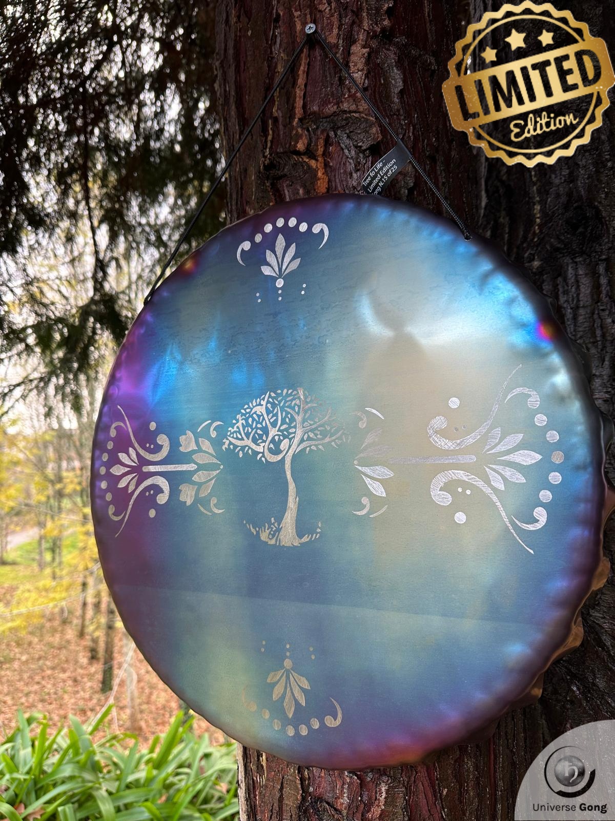 Details Gong : Tree of Life - Limited Edition - TL-15Gong Reference TL-15Size Universe Gong 50 cms / 20.0 in iNote / FrequencyA#2 - 114.10 HzWeight1.80 Kg / 3.97 lbPrice€ 399Shipping cost iFreeStrike MalletIncluded