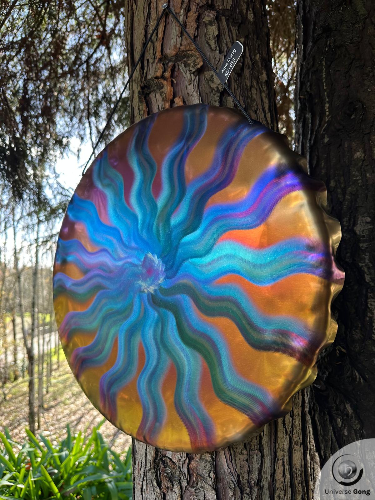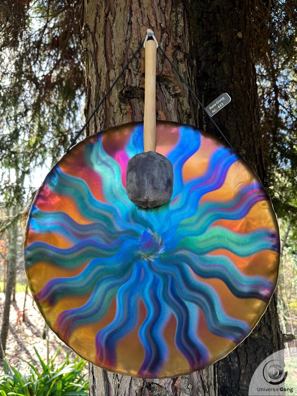Details Gong : Handheld Gong / Aura Gong - AG-613Gong Reference AG-613Size Universe Gong 50 cms / 20.0 in iNote / FrequencyF2 - 85.5 HzWeight1.80 Kg / 3.97 lbPrice€ 299Shipping cost iFreeStrike MalletIncluded