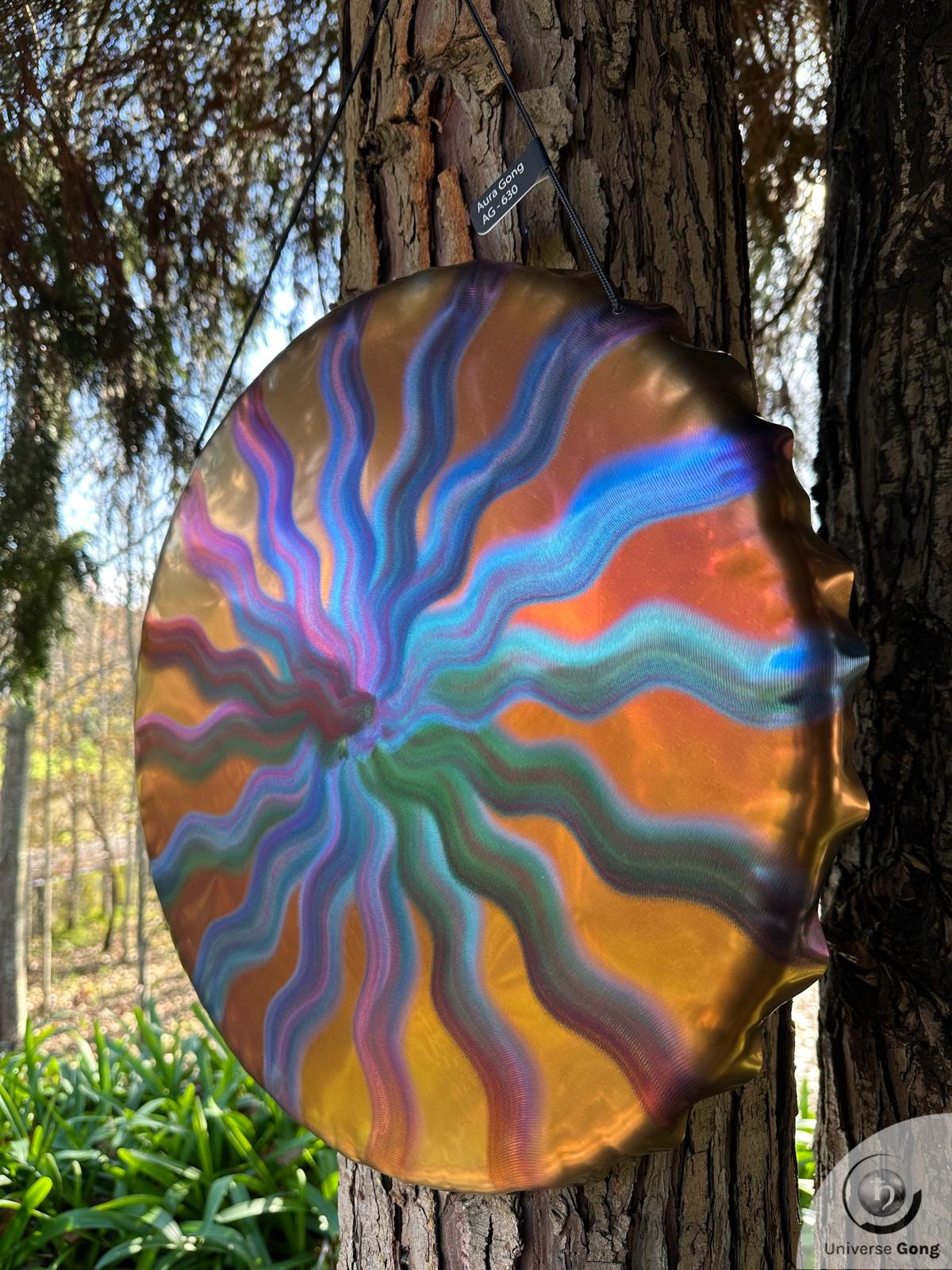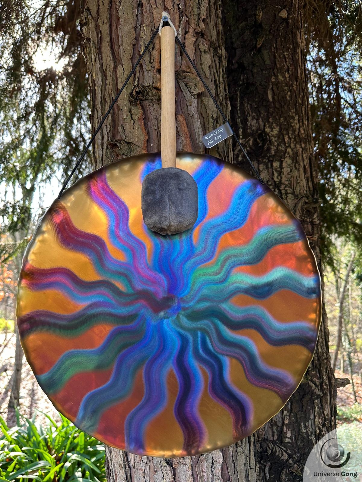 Details Gong : Handheld Gong / Aura Gong - AG-630Gong Reference AG-630Size Universe Gong 50 cms / 20.0 in iNote / FrequencyG#2 - 100.7 HzWeight1.80 Kg / 3.97 lbPrice€ 299Shipping cost iFreeStrike MalletIncluded