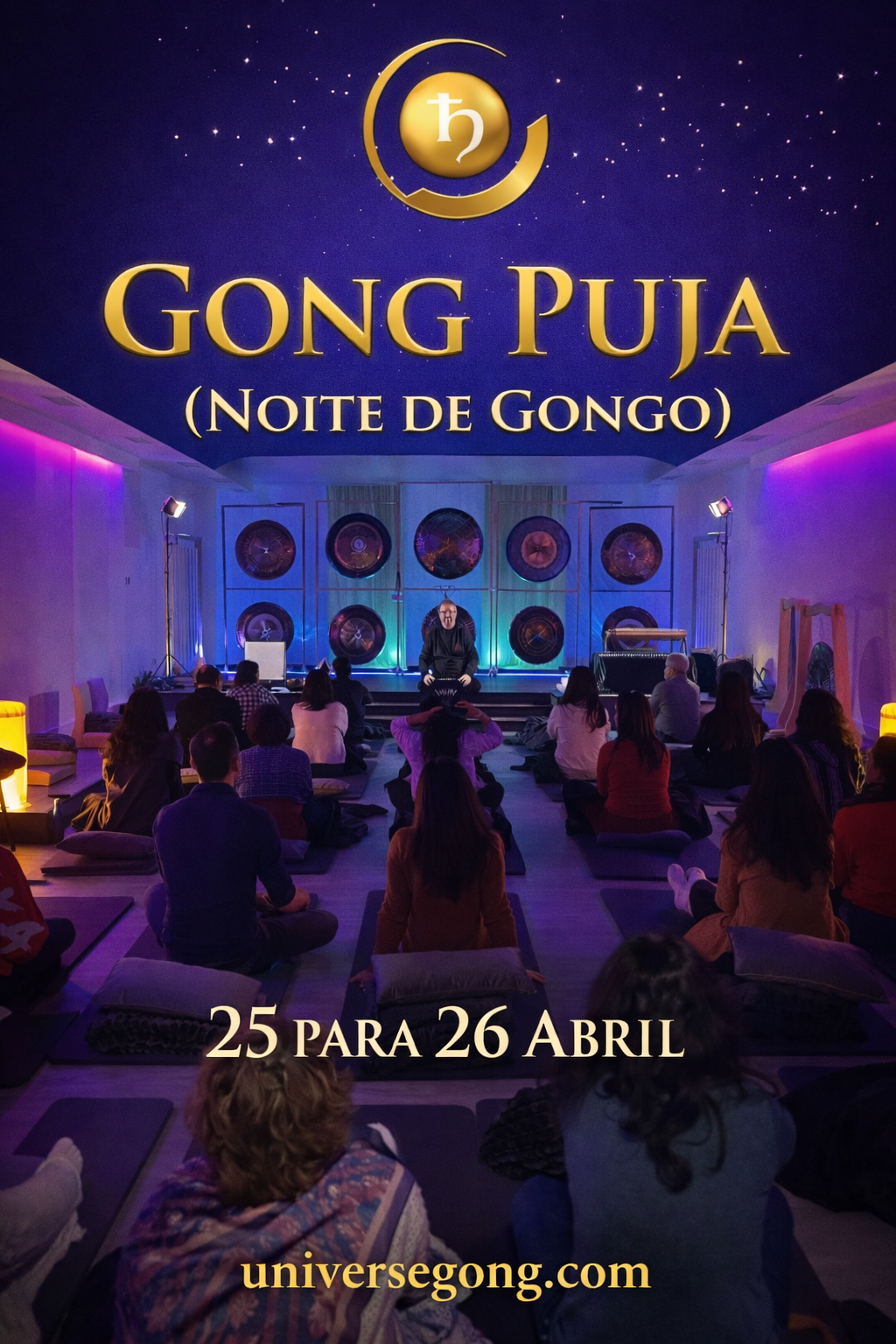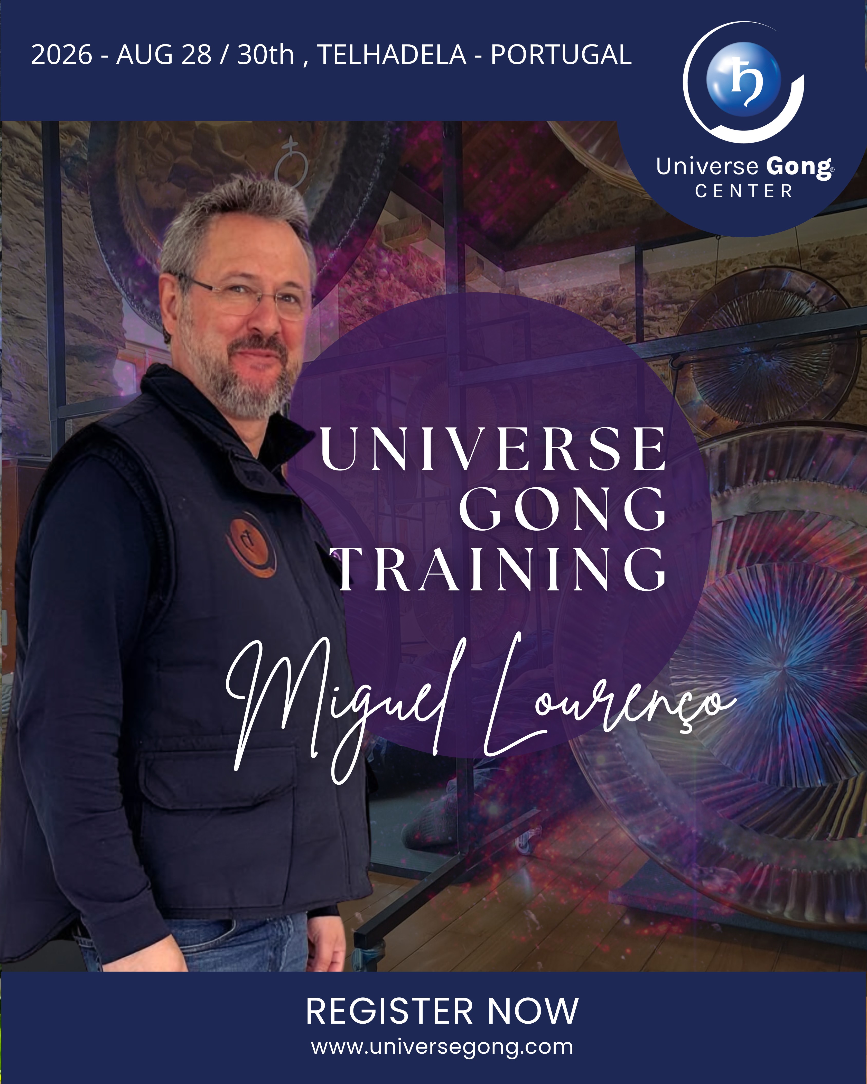 Seminars & Activities Sharing experiences since 2014 Concerto Meditativo com Gongos PlanetáriosTaças Tibetanas e Mantras8 Março 2026: 17:00 - 19:00Vila Nova Gaia - PortugalMiguel LourencoMiguel & Friends Concert with Liliana Almeida14 Março 2026: 17:00 - 19:00Vila Nova Gaia - PortugalMiguel LourencoConcerto Meditativo com Gongos PlanetáriosTaças Tibetanas e Mantras19 Abril 2026: 17:00 - 19:00Vila Nova Gaia - PortugalMiguel LourencoGong-PujaNoite de 25 para 26 Abril 2026: 22:00 - 08:00Vila Nova Gaia - PortugalMiguel LourencoConcerto Meditativo com Gongos PlanetáriosTaças Tibetanas e Mantras10 Maio 2026: 17:00 - 19:00Vila Nova Gaia - PortugalMiguel LourencoUniverse Gong TrainingMay 2026 - 22th to 24th Telhadela - PortugalMiguel LourencoUniverse Gong TrainingAugust 2026 - 28th to 30th Telhadela - PortugalMiguel LourencoUniverse Gong TrainingNovember 2026 - 13th to 15th Telhadela - PortugalMiguel Lourenco SoundBath/Meditations Online Watch live or access the recording anytime you want Please read and accept our Terms of Service Please fill the blank spaces / Select method of payment