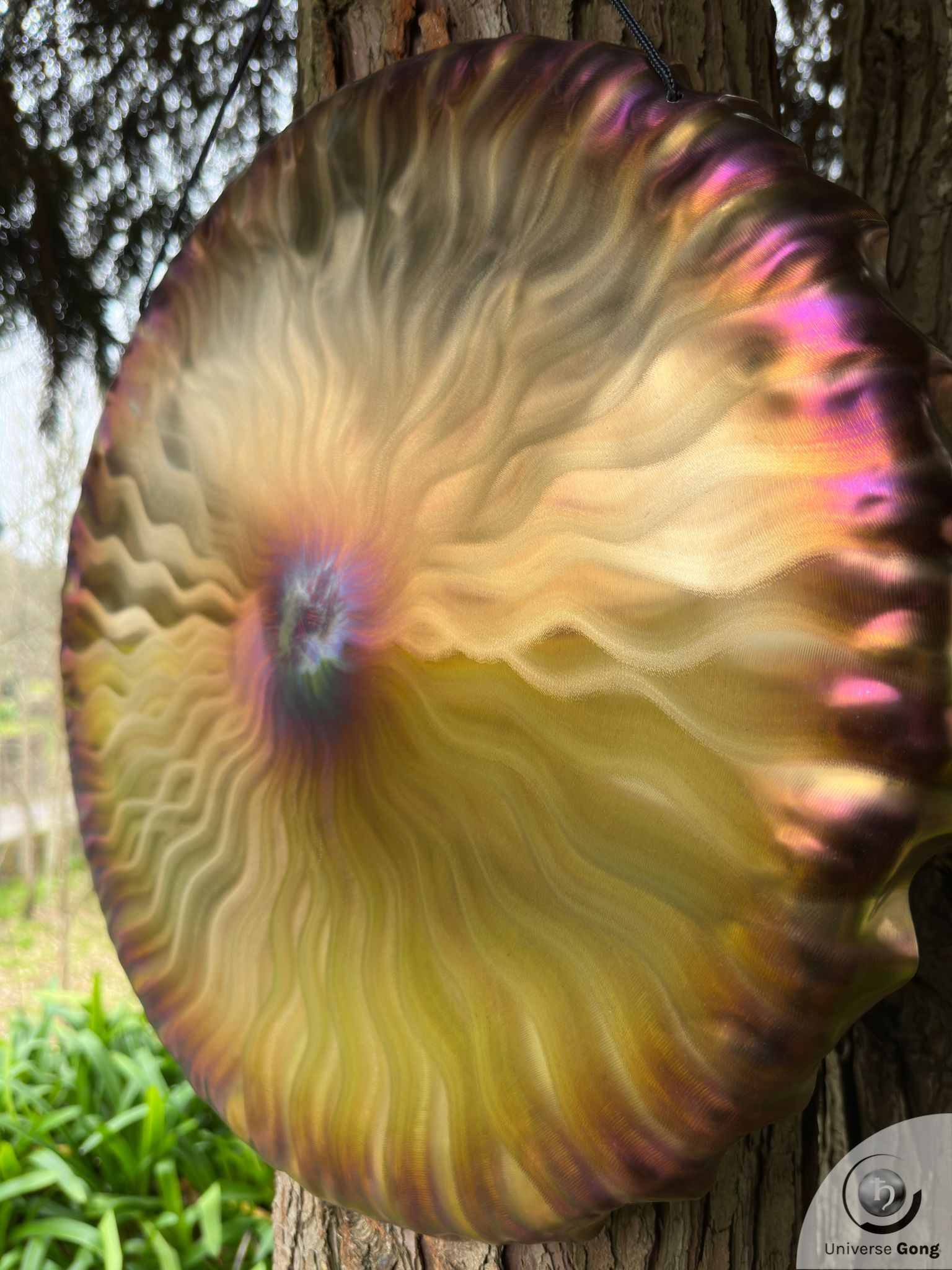 Details Gong : Handheld Gong / Aura Gong - AG-653Gong Reference AG-653Size Universe Gong 50 cms / 20.0 in iNote / FrequencyF#2 - 89.2 HzWeight1.80 Kg / 3.97 lbPrice€ 299Shipping cost iFreeStrike MalletIncluded