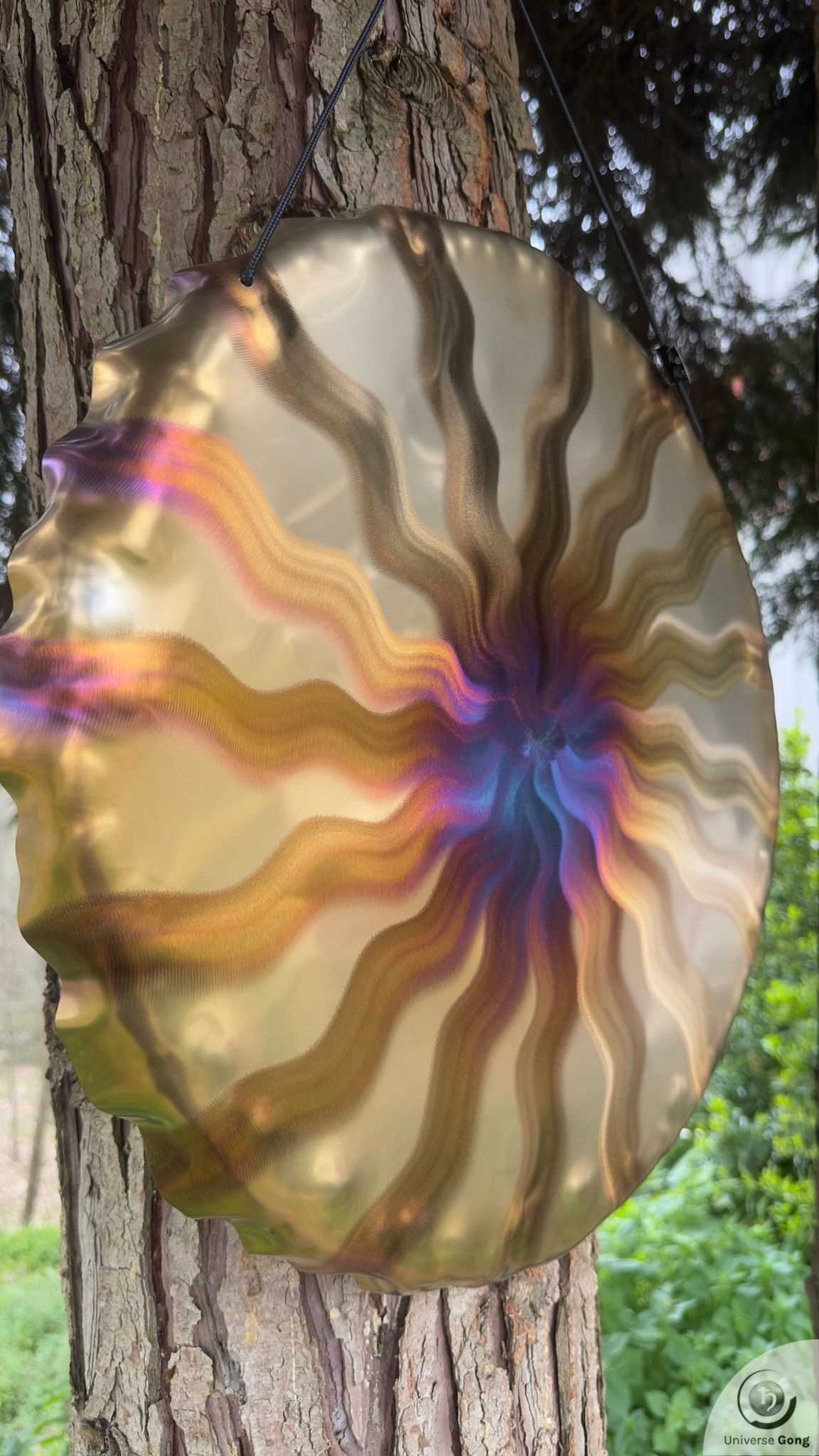 Details Gong : Handheld Gong / Aura Gong - AG-654Gong Reference AG-654Size Universe Gong 50 cms / 20.0 in iNote / FrequencyG2 - 98.6 HzWeight1.80 Kg / 3.97 lbPrice€ 299Shipping cost iFreeStrike MalletIncluded