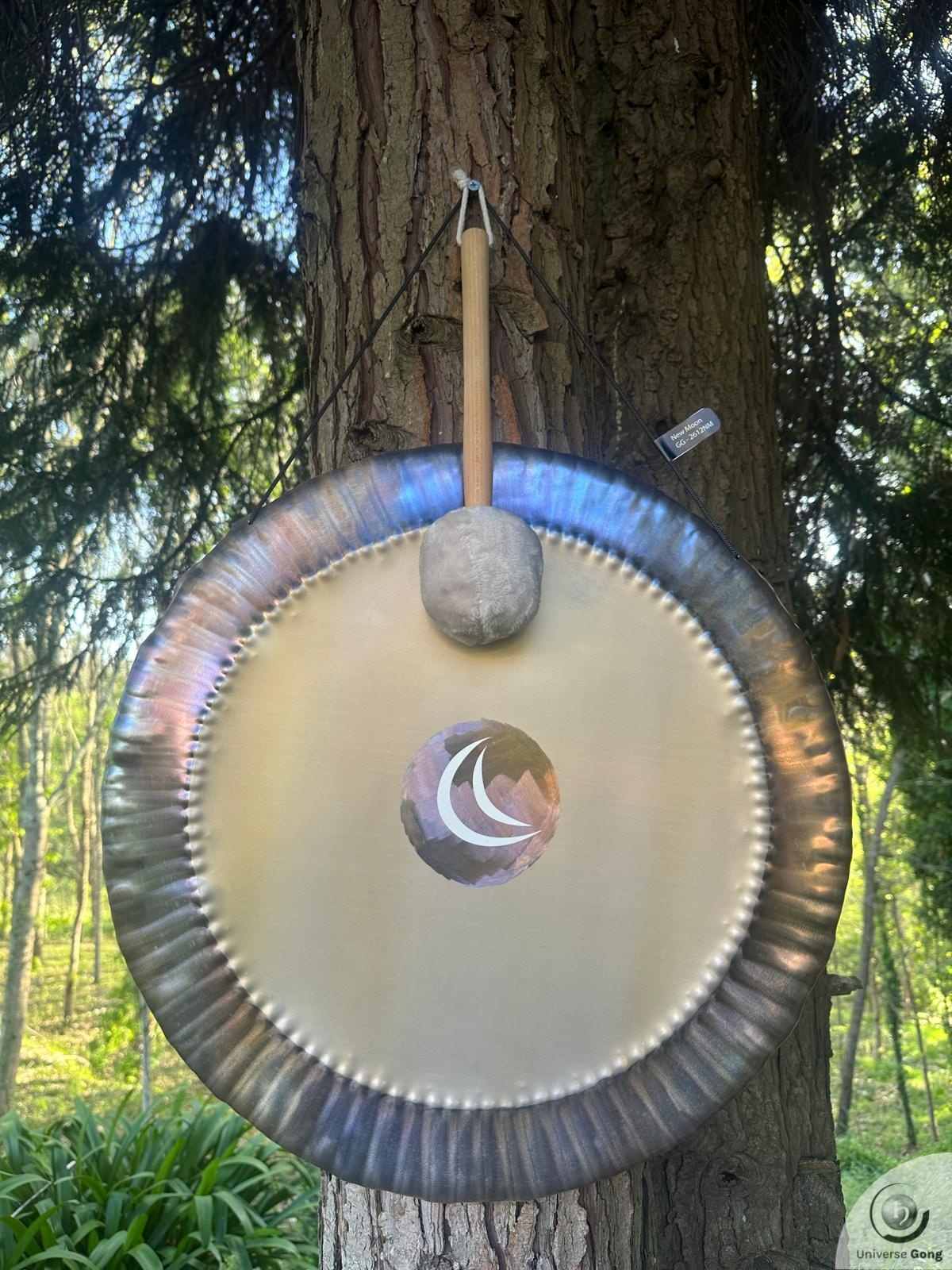 Details Planetary Gong: New Moon - GG-2612NMGong Reference GG-2612NMSize Universe Gong 60 cms / 24.0 in iTune / Note G# - 210.42 Hz / 105.21 Hz / 52.60 Hz Weight2.60 Kg / 5.73 lbPrice€ 799Shipping cost iFreeStrike MalletIncluded