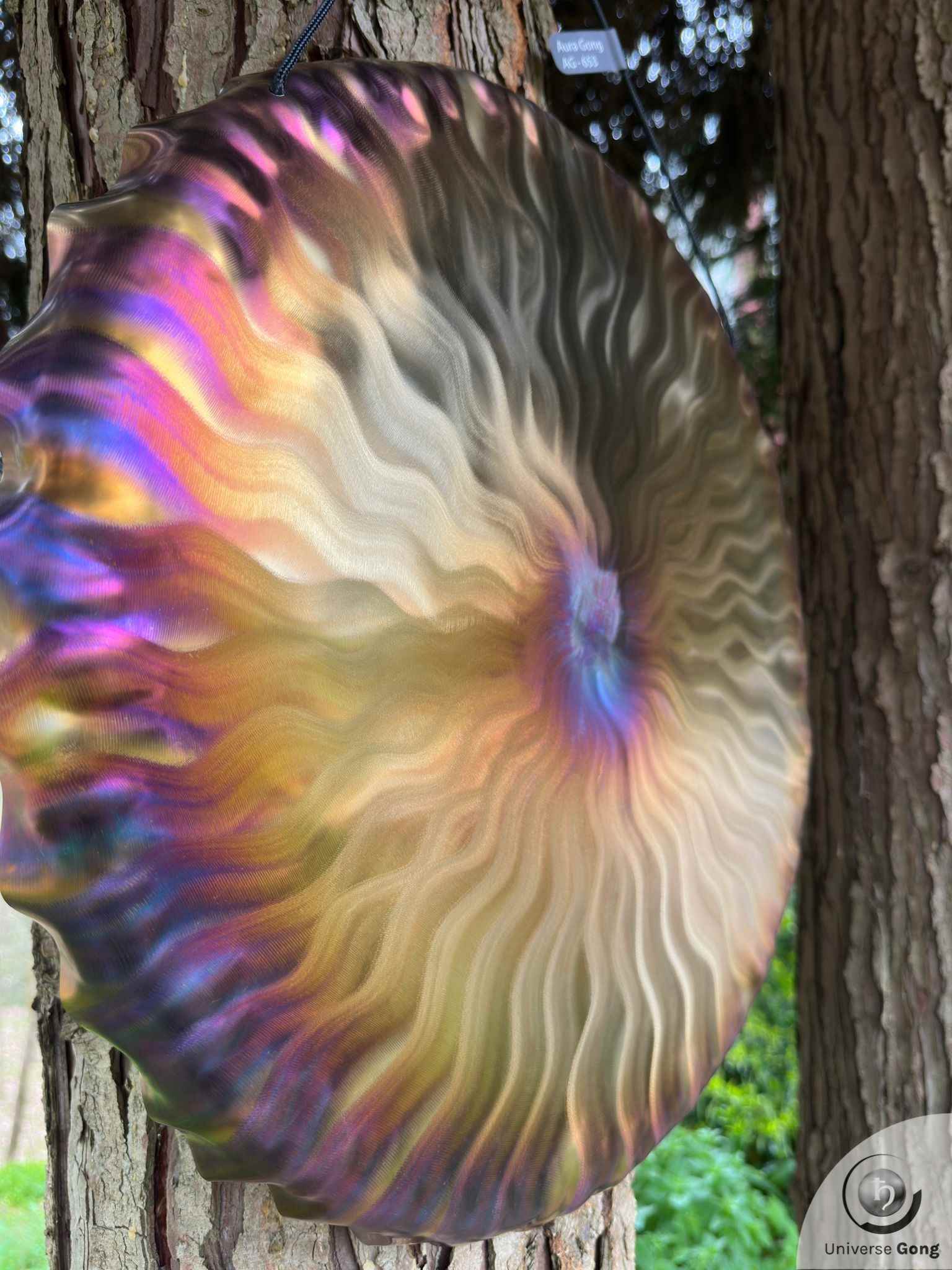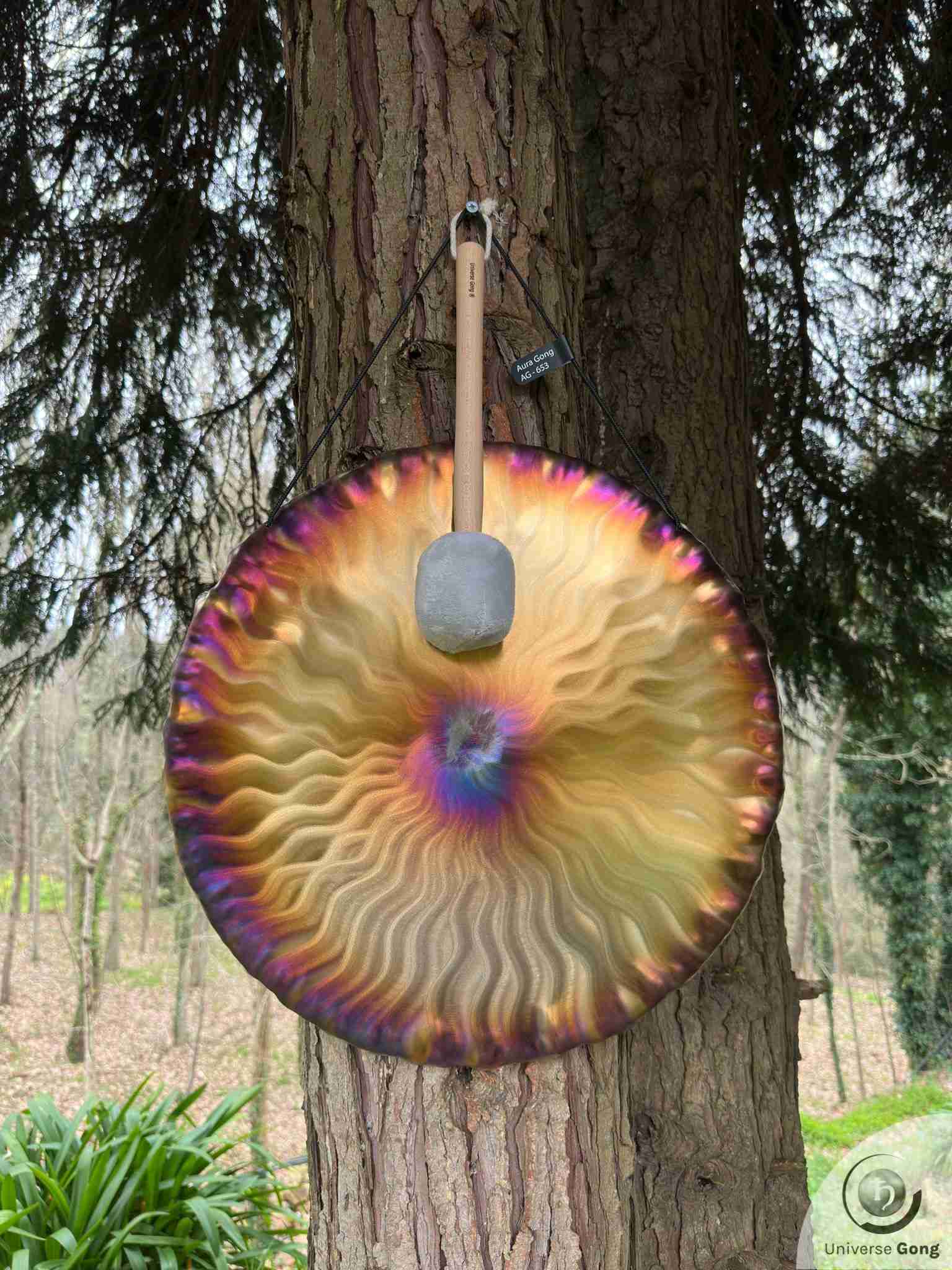 Details Gong : Handheld Gong / Aura Gong - AG-653Gong Reference AG-653Size Universe Gong 50 cms / 20.0 in iNote / FrequencyF#2 - 89.2 HzWeight1.80 Kg / 3.97 lbPrice€ 299Shipping cost iFreeStrike MalletIncluded