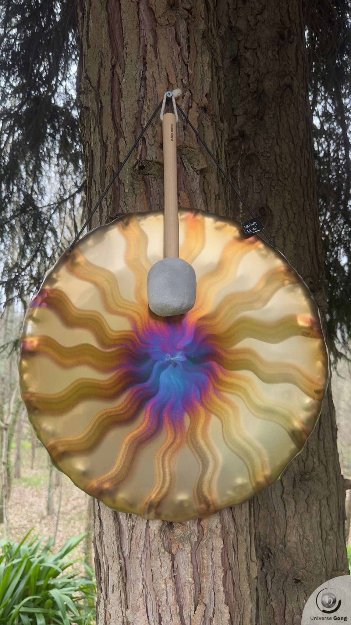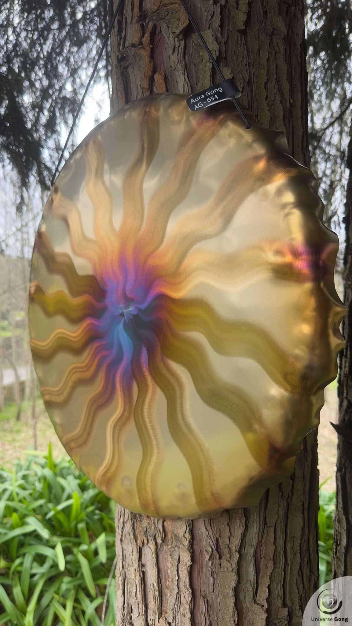 Details Gong : Handheld Gong / Aura Gong - AG-654Gong Reference AG-654Size Universe Gong 50 cms / 20.0 in iNote / FrequencyG2 - 98.6 HzWeight1.80 Kg / 3.97 lbPrice€ 299Shipping cost iFreeStrike MalletIncluded