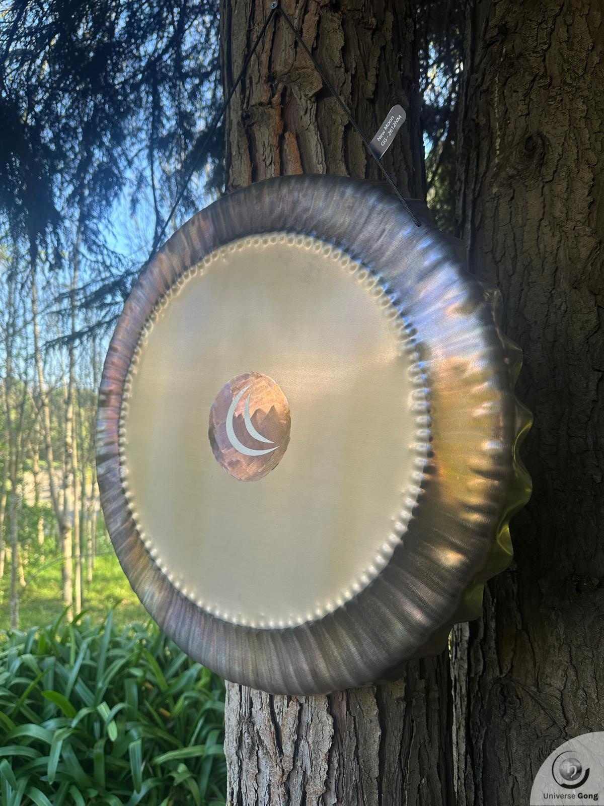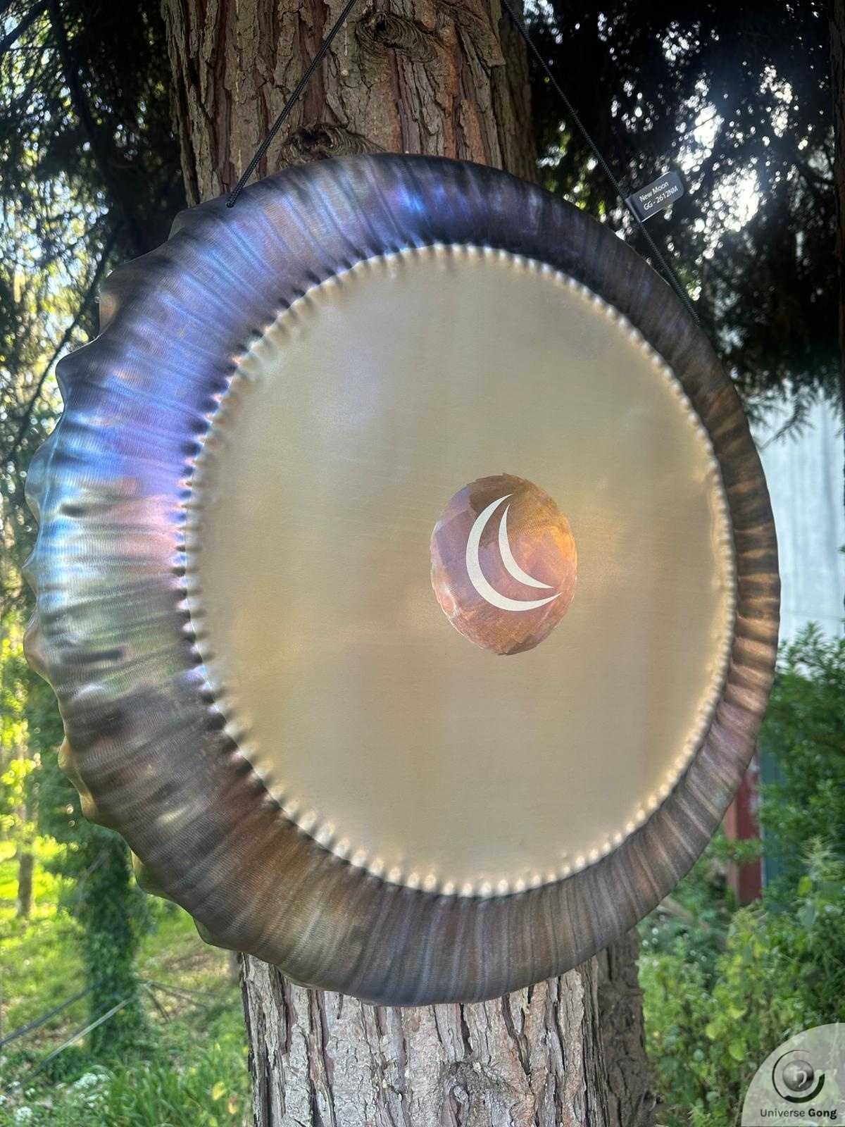 Details Planetary Gong: New Moon - GG-2612NMGong Reference GG-2612NMSize Universe Gong 60 cms / 24.0 in iTune / Note G# - 210.42 Hz / 105.21 Hz / 52.60 Hz Weight2.60 Kg / 5.73 lbPrice€ 799Shipping cost iFreeStrike MalletIncluded