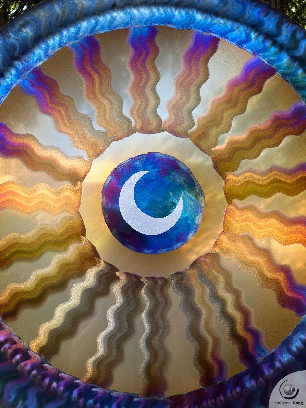 Details Planetary Gong: Full Moon - GG-2018FMGong Reference GG-2018FMSize Universe Gong 70 cms / 27.5 in iTune / Note A# - 227.43 Hz / 113.72 Hz / 56.86 Hz Weight3.40 Kg / 7.50 lbPrice€ 899Shipping cost iFreeStrike MalletIncluded